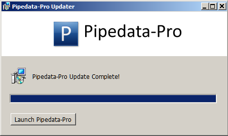 Pipedata-Pro Version 14.0.00.0 and onward has an 'Auto-Update' feature. Actually it is not entirely automatic, when an update is available you will get a message as in Fig 1 with a link describing the new features, select 'Yes' and the software will then be automatically updated and finish with an option to launch Pipedata-Pro Fig 2. The message will not show every time you open Pipedata-Pro, at a maximum just once a day until the update is installed. You can disable Auto-Update by un-checking the box at the settings form. Fig 5.